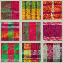 A GumCha is the original: cotton scarf, towel, hat, skirt, and air conditioner and are used by millions of hard-working people every day. The GumCha collected in this portfolio are handloomed by rural farming families in West Bengal, India, from 100% Indian cotton. GumCha are about 64”-69” long and from 25”-29” wide, yet only weigh about 4 ounces. There are over 10,000 distinct patterns and color combinations, and because they are handwoven, each GumCha is unique.